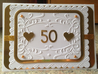 So this card is not my normal style but needs must as they say. So it was time to dig into the stash of embossing folders that I tend to neglect and see what I could find. So after a bit of embossing and die cutting this is the end result and no oxide inks in sight!!